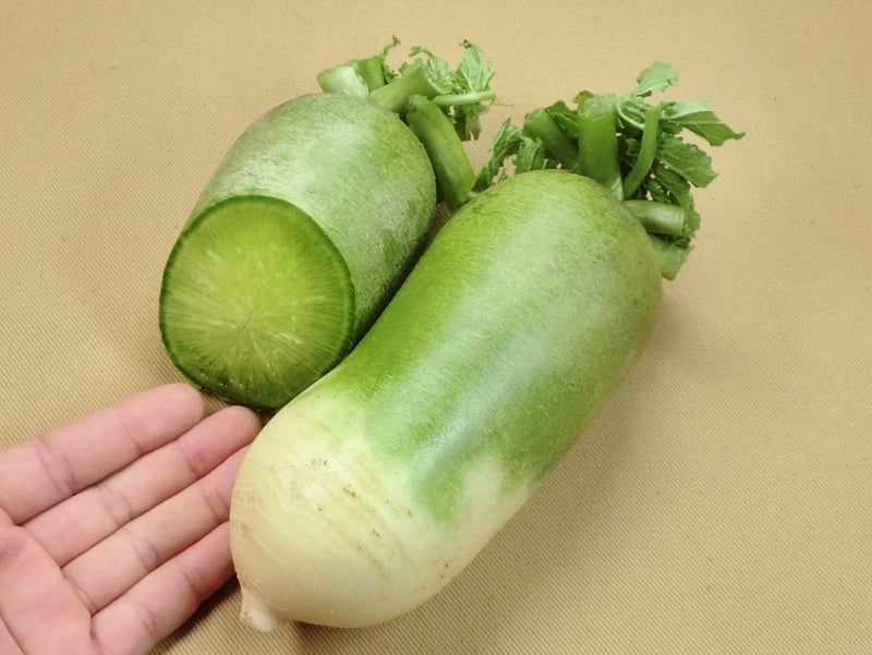 ビタミン大根は外皮の頭の部分が緑色で先にいくほどが白