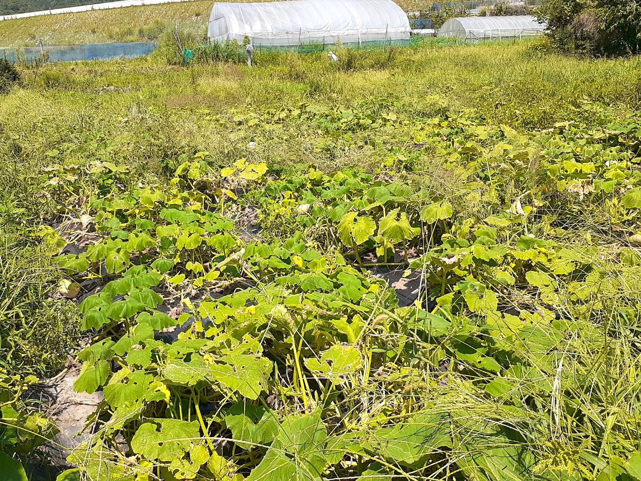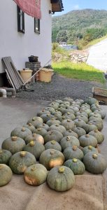 鮮度一番まごやさい!などと謳ったりしておりますが、鮮度重視じゃない野菜もあります。その一つがカボチャ。採った時点ではでんぷん質が多く、置くことで糖に変わり甘みが出ます。これを追熟と言い、小さいもので2週間、大型のものでは1ヶ月ほど要します。