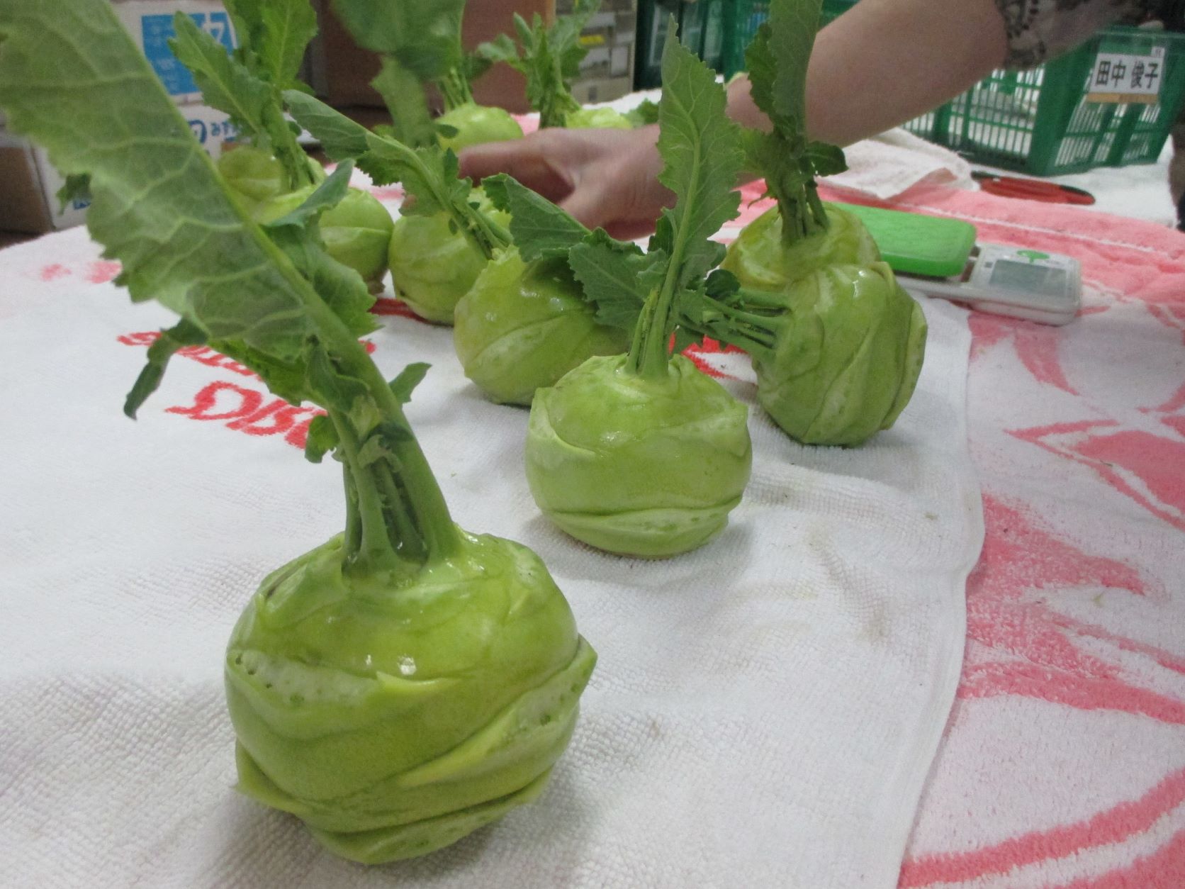 そんな中でも無事収穫できたのがコールラビ、一見根菜のように見えますが、茎が肥大化したキャベツの仲間です。