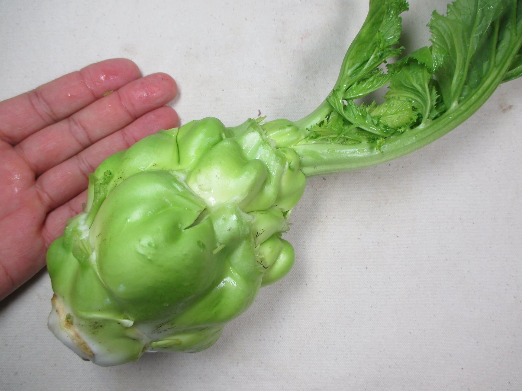 からし菜の仲間で、茎が肥大がする野菜。その肥大した部分は大きいもので1kg近くにもなります。