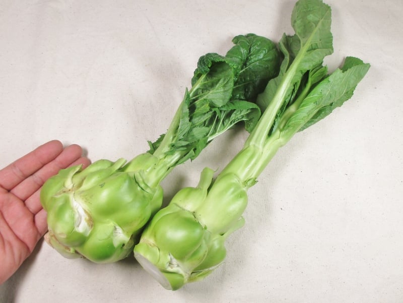 ザーサイはアブラナ科の野菜でからし菜の仲間です。茎の下部がこぶ状になっていて少しグロテスク?…。茎の部分を使った漬物(中華の定番搾菜)が有名ですが生のザーサイはとても珍しく貴重です。皮を剥くと中味は瑞々しく高菜の風味がして美味しいサラダ材料に。バーニャカウダーやスティックサラダにも使えます。少し硬い茎の部分は細くスライスしてキンピラ風の炒め物もお勧めです。是非珍しい生ザーサイをお試しください。
