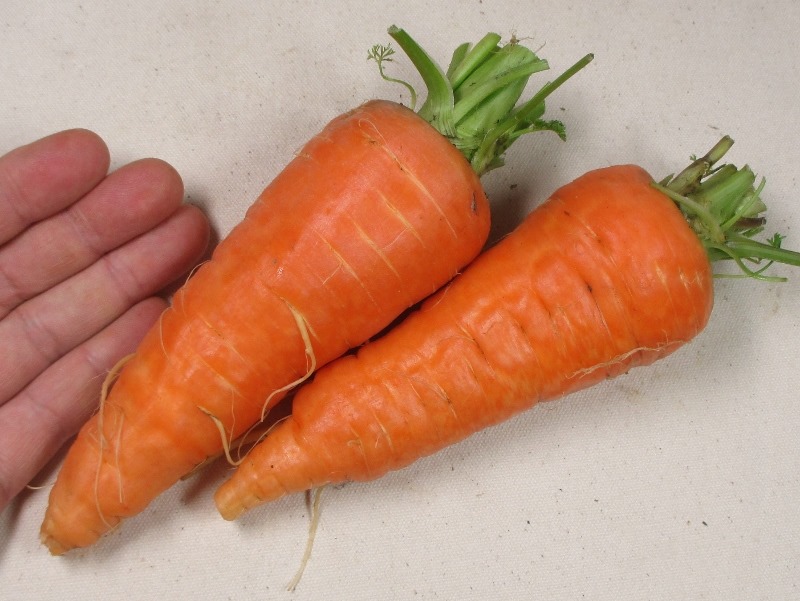 人参はビタミンやカロテンなどの栄養素がたくさんある根菜で、香りよく爽やかな甘みがあります。特に外皮の近くにカロテンが多く含まれているので薄めに皮をむいて使ってくださいね。カレー、シチュー、ポトフ、かき揚げ、シリシリなど様々な料理に使えるので常備したい野菜ですね。まごやさいの自慢の人参は採りたて新鮮です!サラダ、ジュースなどの生食もお勧めです。是非掘りたての人参をお試しください。