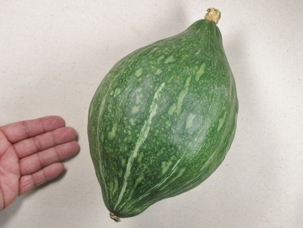次にご紹介するのは「ほっこり姫」。こちらは手のひらサイズの小型品種で名前から想像される通り?ホクホクした食感のカボチャです。甘みはそこそこ、もう少し置いたら更に甘みが強くなるかもしれません。